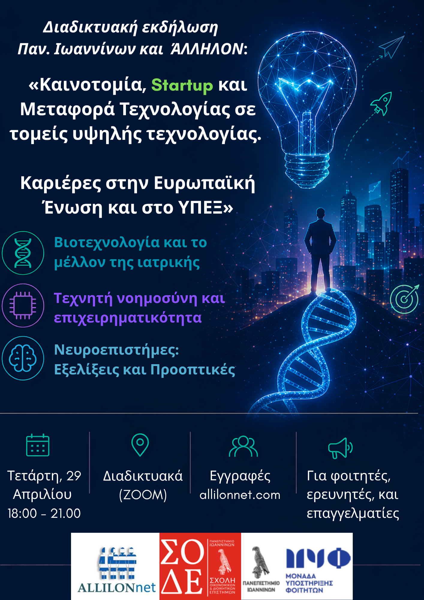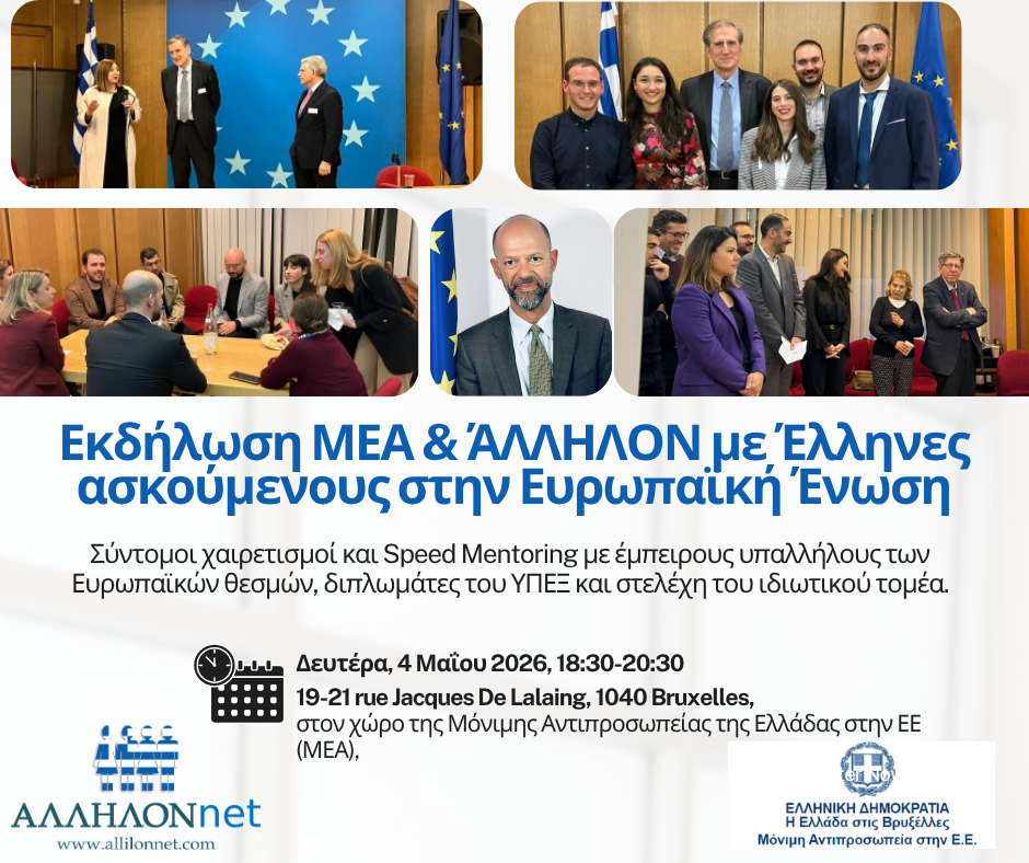 Για πολλούς, κυρίως νέους μας, η AΛΛΗΛΟΝ είναι ένα άμεσα χρήσιμο εργαλείο για τα επόμενα βήματά σπουδών, επαγγελματικής ένταξης, καριέρας ή επιχειρηματικότητας. Για όλους, είναι πνεύμα και μήνυμα ενθάρρυνσης, δημιουργικότητας, συνεργασίας, αλληλεγγύης και αλληλοϋποστήριξης.