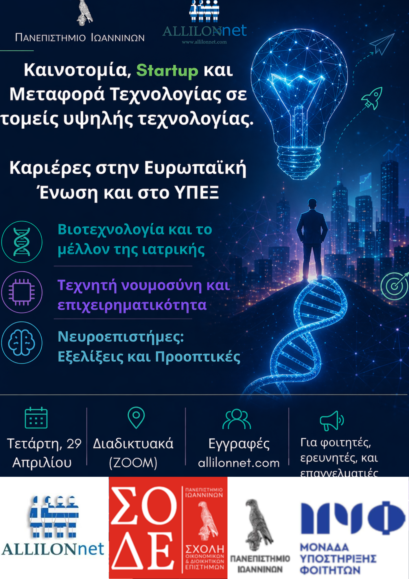 Για πολλούς, κυρίως νέους μας, η AΛΛΗΛΟΝ είναι ένα άμεσα χρήσιμο εργαλείο για τα επόμενα βήματά σπουδών, επαγγελματικής ένταξης, καριέρας ή επιχειρηματικότητας. Για όλους, είναι πνεύμα και μήνυμα ενθάρρυνσης, δημιουργικότητας, συνεργασίας, αλληλεγγύης και αλληλοϋποστήριξης.