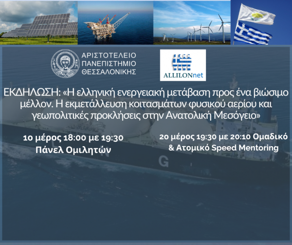 “Greece and the Eastern Mediterranean: sustainable development goals, green deal, energy transition and exploitation of Greek deposits, with Speed Mentoring”.